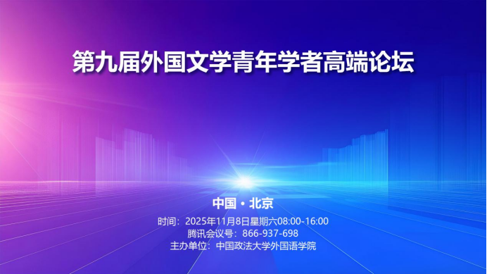 2025年11月8日,中国政法大学第九届“外国文学青年学者高端论坛”以腾讯会议和哔哩哔哩直播的形式在线上成功举行。本次论坛汇聚了来自京内京外各大高校外国文学方向的青年知名学者,从文学与老年学、文学与生态、文学与法律、文学与医学、文学语文学、文学与政治、文学与科学、文学与技术等多个跨学科视角共同探讨当今外国文学研究的前沿与动态。外国语学院副院长张磊担任全场主持。