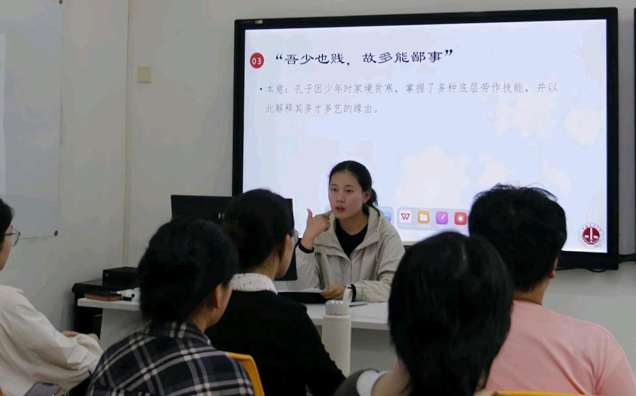 师姐一开始就提出这个关键词“君子不器”,即要努力成为通才,不成为某一个定型的人。以我的理解来看就是要增强自我内核,提高能力的流动性,不拘泥也不封闭,在学生工作中不断成长,铸就多元化的自我内核。师姐说:毋意,毋必,毋固,毋我。这其中有一点很触动我:那就是毋我,不要以自我为中心,而是以服务者的身份投入工作,达到忘我的状态。同时,还要发挥学生干部的带头作用,在同学们积极性不高时,勇当先锋,以此提高学生工作的配合度和效率。然后便是“吾少也贱,故多能鄙事”。从一个小白萌新成长为一个大家可以倚靠的求助的大师姐,这其中必定经历过很多艰难坎坷,不论是对新的陌生领域的接触,还是工作时犯过的差错,其实都是成长的养分,是对内核以及处理问题能力的顶级淬炼。我相信,在师姐的指引下,往后的学生工作,我会以师姐为榜样,提升自我,服务奉献,认真负责,踏实高效,让外院的学生工作更上层楼。