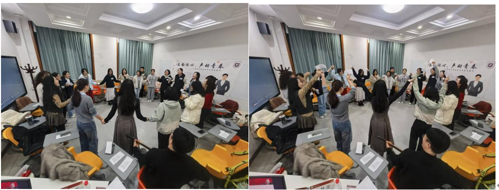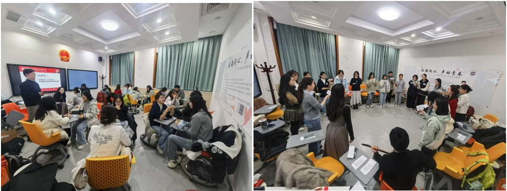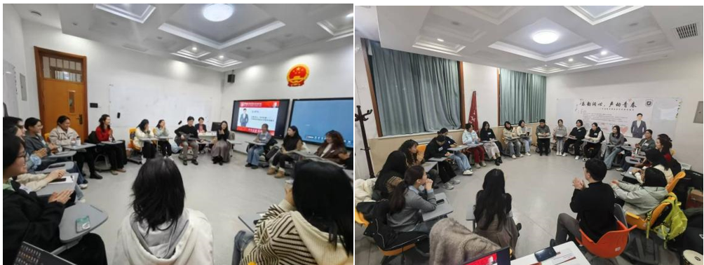11月7日晚,外国语学院心理健康工作站“玉兰心舍”在格物楼115教室举办第四期音乐疗愈团体辅导活动。清华大学学生心理发展中心音乐团体咨询师孔祥阳受邀带领,围绕情绪识别、压力舒缓与同伴支持展开体验与交流。学院团委书记、辅导员许慧芳与本科生15个宿舍22名同学参加了本期团体辅导。